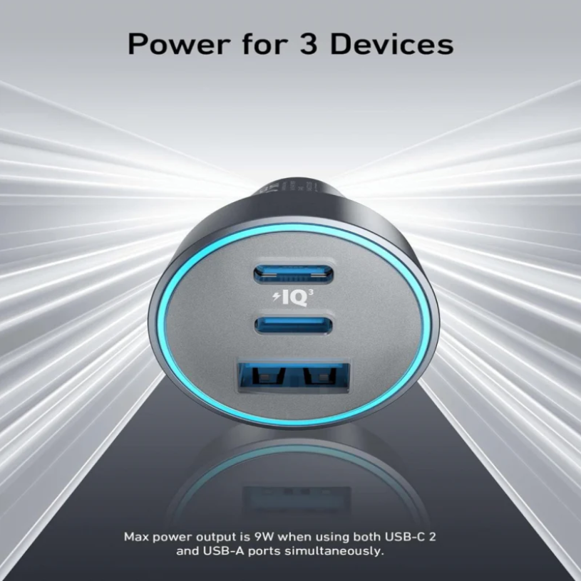 - 67W Power Output: Delivers fast charging for multiple devices, including smartphones, tablets, and laptops, with a total output of 67W, allowing you to charge three devices simultaneously.