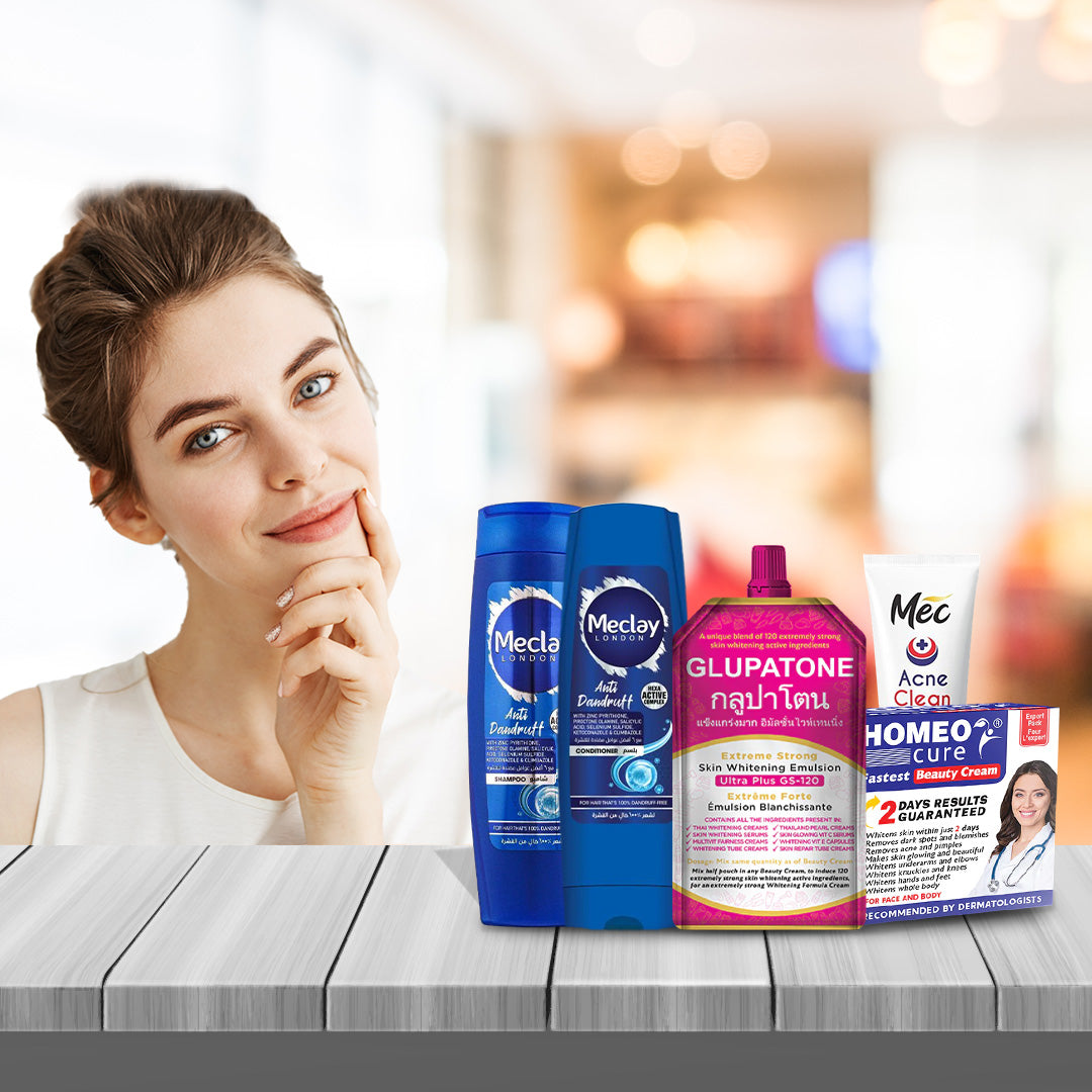 This offer includes Meclay London Shampoo and Conditioner, Mec’s Whitening Face Wash, Glupatone Whitening Emulsion 50 ml and Homeo Cure Beauty Cream. All in just 1905 Rs.