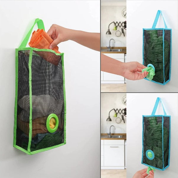 The Trash Net Bag will keep your kitchen tidy and let you take convenience into account if you use it long term. This brilliant bag for recyclables or household stuff such as socks and gloves is made from breathable, non-toxic (toxic is a typo) material. It has two openings at the side and bottom, so you have easy access to contents and you can grab what you need with ease. The classification storage system will help you keep organized and able to find what you’re looking for fast. Save valuable kitchen space and keep your area clutter free by hanging it on the wall. This is a great multi purpose net bag for home storage.