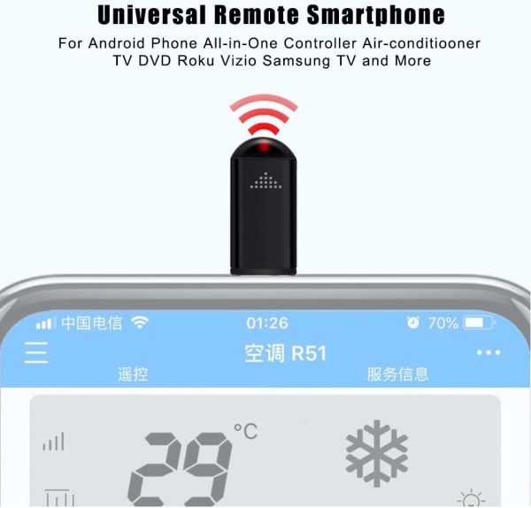 The Universal Smart Remote-Control Connector IR Controller Adapter (USB-C) transforms your Android smartphone into a versatile infrared (IR) remote, enabling control over a wide array of household appliances such as TVs, air conditioners, DVD players, and set-top boxes. This compact and lightweight device plugs directly into your phone's USB-C port, eliminating the need for batteries or additional hardware.